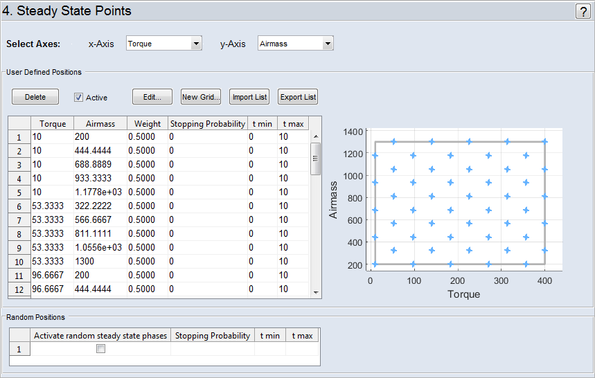 This step allows you to define operating points for the system, which have a frequency of stay in the experiment plan. In addition you can define steady state phases and the duration of the steady state phases.