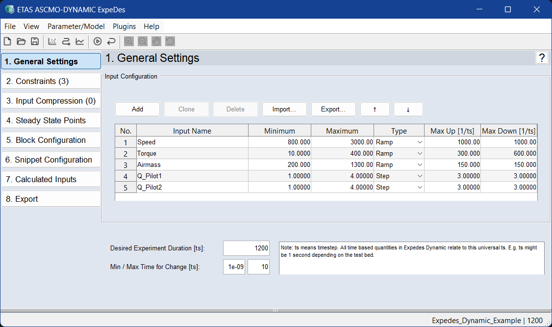 Main Window of ASCMO-DYNAMIC ExpeDes