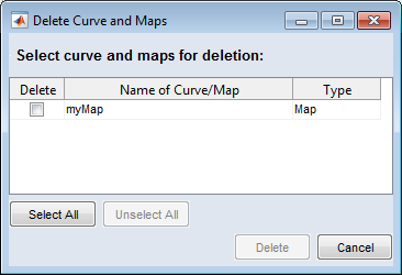 Opens the "Delete Curve and Maps" window, where you can delete already applied maps or curves.