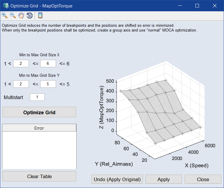 "Min to Max Grid Size X" and "Min to Max Grid Size Y"