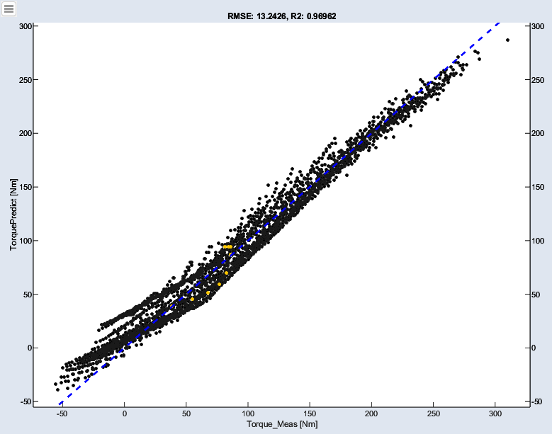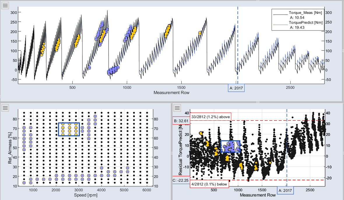 Only Marked Data オプション( > Configure Single Element > Only Marked Data)を使用すると、動作ポイントごとの予測値と点火角度を比較する際などに、データの概要が把握しやすくなります。