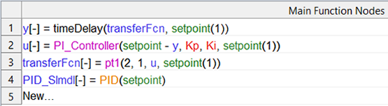 無効な式をプレースホルダとして使用することができます。第1ノード内に無効な式を追加しておき、後からその式を有効な内容に変更することができます。 一例として、Function Closed-Loop (PID) デモプロジェクト内の transferFcn ノードを参照してください。