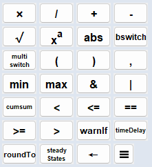 ウィンドウの長さと高さに基づいて信号の定常状態を計算する演算子 steadyState_abs( を式に挿入します。式の末尾には ) が必要です。構文は以下のとおりです: