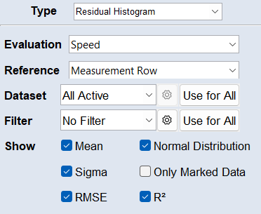 残差をヒストグラムで表示するには、Residual Histogram プロットを使用します。残差とは、2つの信号間の偏差または誤差です。このタイプのプロットでRMSEとR²を表示することもできます。