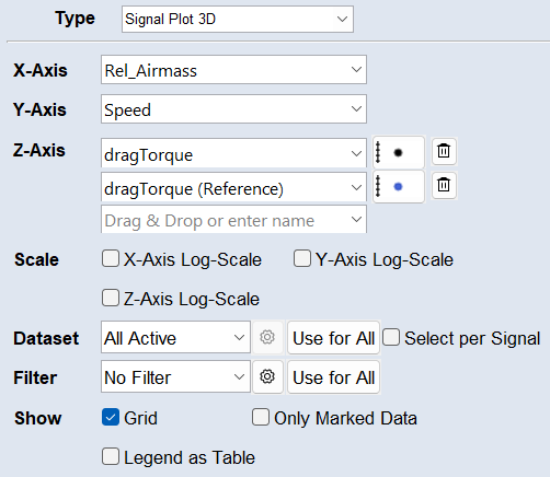 信号ごとにデータセットを指定するには、Select per Signal チェックボックスをオンにします。各信号の横に
