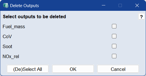 開くDelete Outputs ウィンドウを開き、出力を選択してモデリングから削除します。