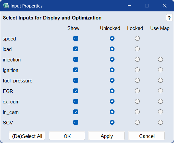 開くInput Properties ウィンドウを開き、表示して最適化に使用する入力を選択します。