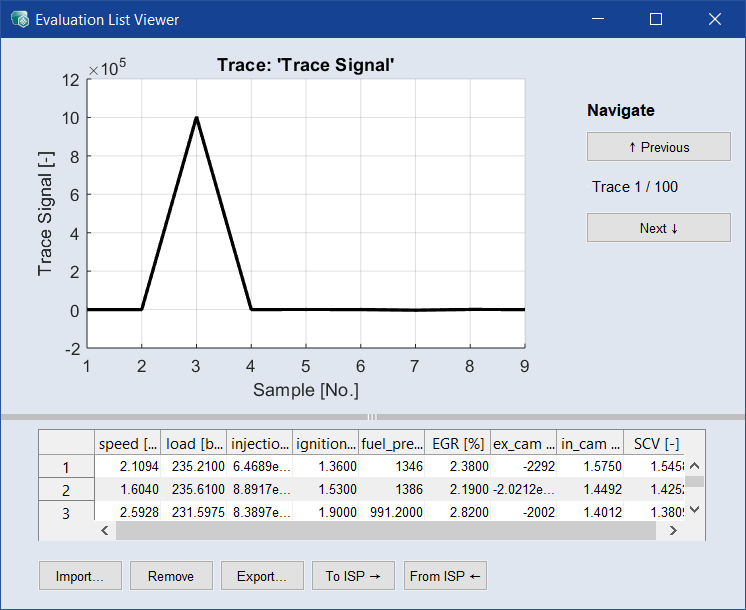 Evaluation List Viewer ウィンドウには以下のエレメントが含まれます。