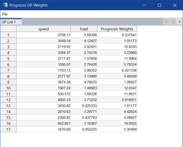 Prognosis OP-Weights ウィンドウと Calculated Operating Point Weights from Driving Cycle 1 ウィンドウが開きます。動作ポイントの位置が変更されています。