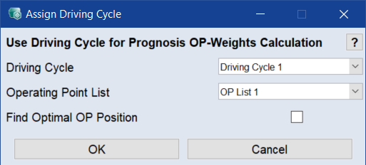 Prognosis OP-Weights ウィンドウと Calculated Operating Point Weights from Driving Cycle 1 ウィンドウが開きます。