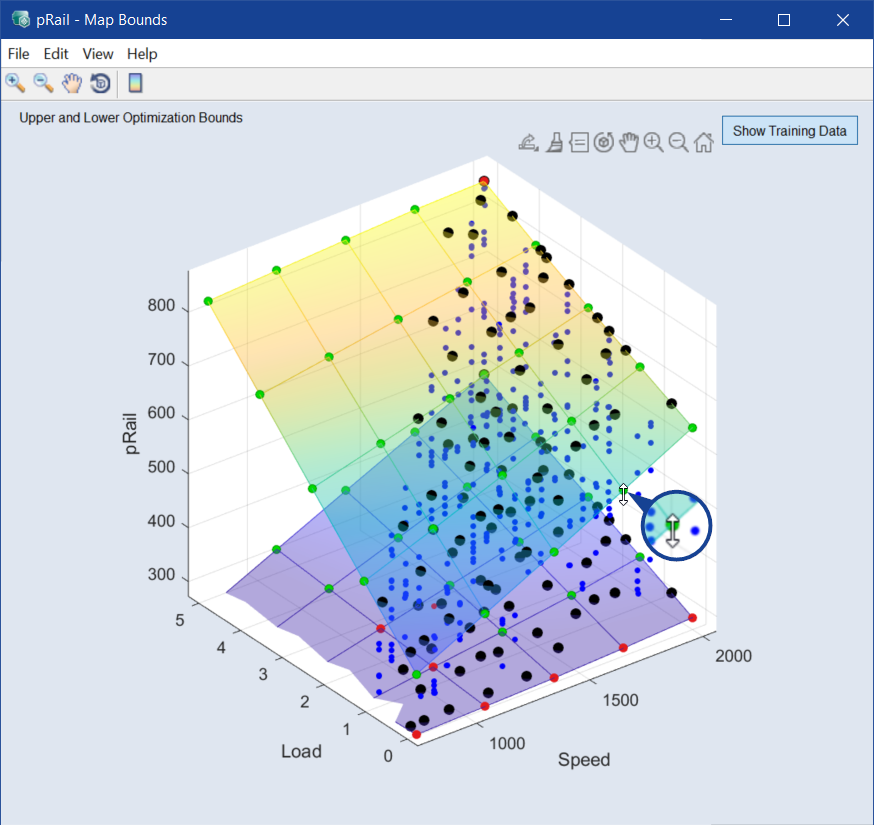 すべての入力の有効範囲が実測値の範囲に調整されます。これにより各パラメータは、すべての動作ポイントにおいて実測範囲内の値にしか調整できなくなります。