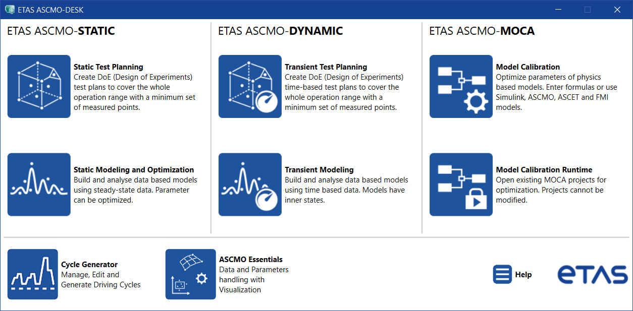 ASCMO-DESK ウィンドウで Static Modeling and Optimization タイルをクリックします。
