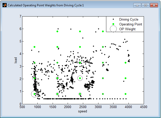 "Prognosis OP-Weights" ウィンドウと "Calculated Operating Point Weights from Driving Cycle 1" ウィンドウが開きます。