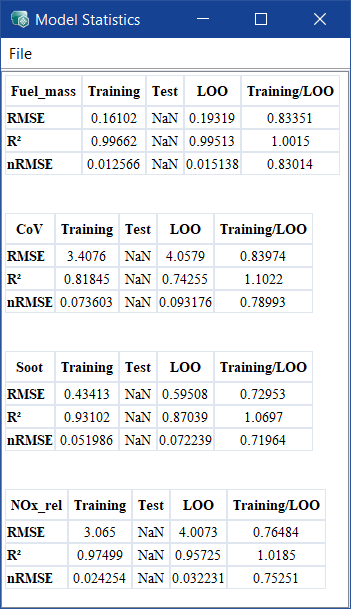 Model Statistics ウィンドウには、以下の変数が含まれます