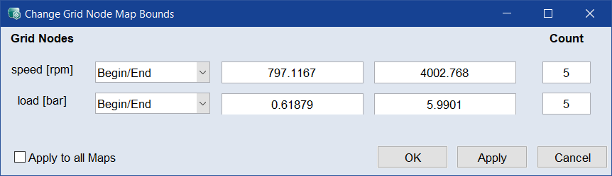 Change Grid Node Map Bounds ウィンドウが開きます。ここでは新しいグリッドノードの数と位置を定義できます。