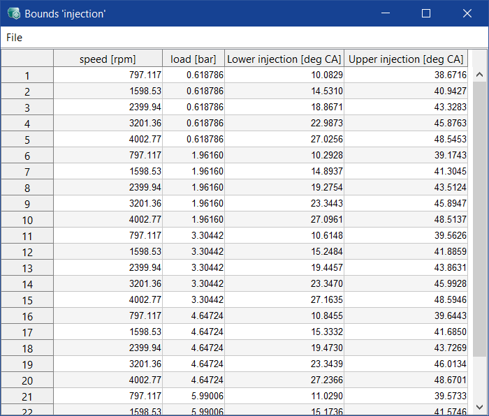 マップ境界をパラメータ変動の制限とともにファイル(*.dcm、*.xls、*.xlsx、*.xlsm、*.csv、*.ascmo)からインポートします。