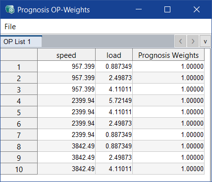Prognosis OP-Weights ウィンドウには以下のエレメントが含まれます。