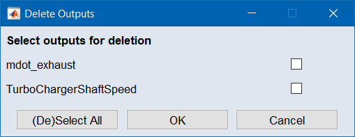 "Delete Outputs" ウィンドウを開き、出力を選択してプロジェクトから削除します。