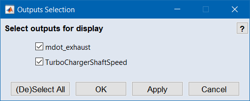 "Outputs Selection" ウィンドウを開き、最適化と表示を行う出力を選択します。