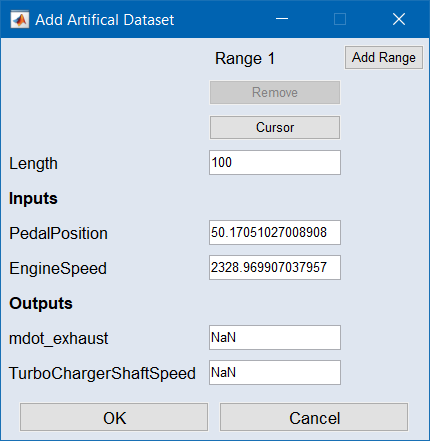 "Create Artificial Dataset" プラグイン(Plugins → Create Artificial Dataset)では、区分的定数データセットを生成し、モデルの振る舞いを確認することができます。これらのデータセットはテストデータセットとして追加され、プロットや表として表示することができます(Data → Table → Test Data)。