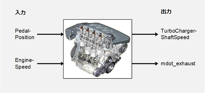 測定対象の例(ディーゼルエンジン)の入力と出力は測定対象となるディーゼルエンジンと表に説明されています。