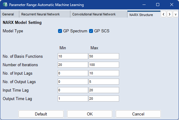 各パラメータについての詳細は、Model Configurations:NARX Structureを参照してください。 |