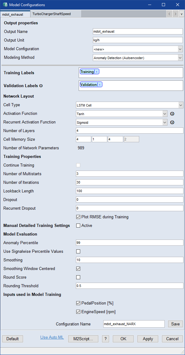 Model Configurations:Anomaly Detection (Autoencoder)