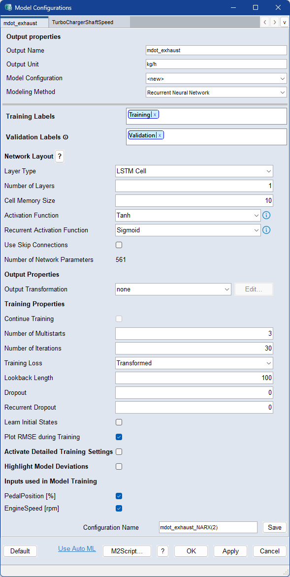 Output Properties 領域とウィンドウ最下部のボタン行についての説明は、 Model Configurations (ASCMO-DYNAMIC)を参照してください。