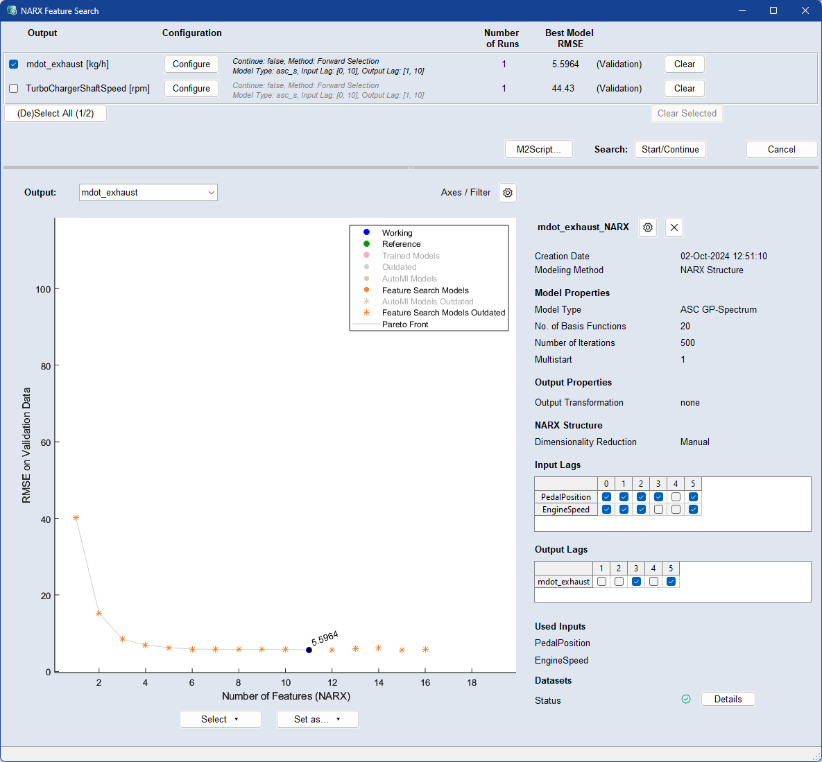 Model > NARX Feature Search