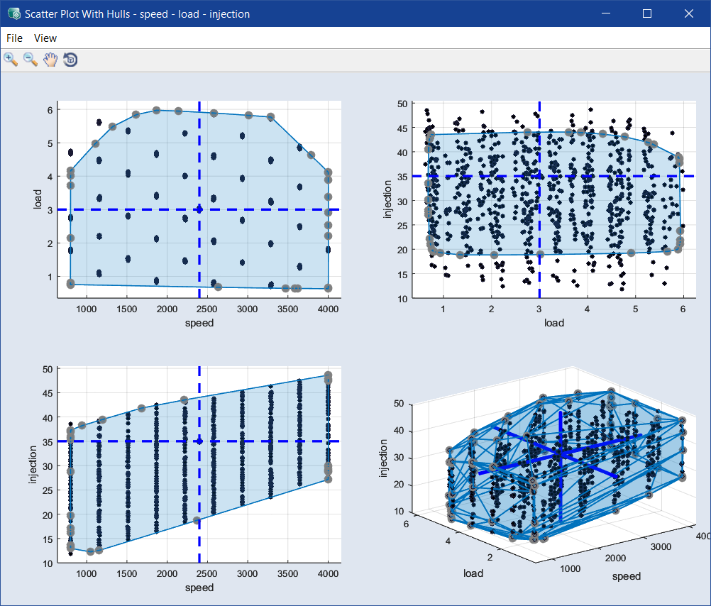 散布図ウィンドウが開き、すべてのペアの2D外殻が表示されます。