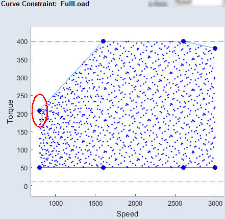 このステップでは、ある変数の測定値の制限範囲(以下「制限」と記します)を、他の変数の関数として定義します。たとえば、高回転域においては高負荷を避ける、というような制限を定義することができます。