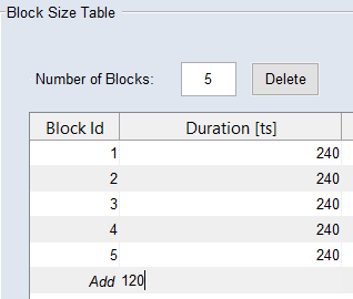 テーブルの最下行(Block ID = Add)の Number of Measurement 列に、新しいブロックに割り当てる測定値の数を入力して、<Enter> を押します。