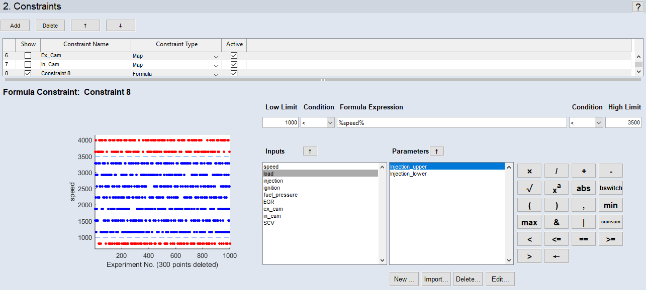 複数の入力間の複雑な依存関係により測定値が予測不可能な範囲の値となる場合は、マップ/カーブによる制限では不十分である可能性があります。そのような場合、もしこの依存関係が入力やパラメータを用いた算術的条件で記述できるのであれば、フォーミュラベースの制限が有効です。