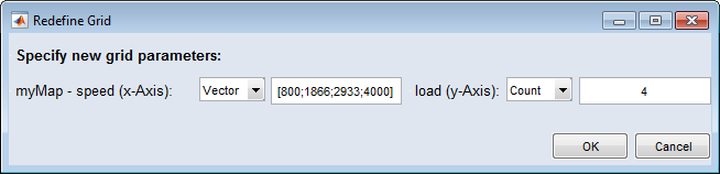 "Redefine Grid" ウィンドウが開きます。いずれかのコンボボックスで Count を選択すると、その軸のグリッドポイントの数を入力することができます。