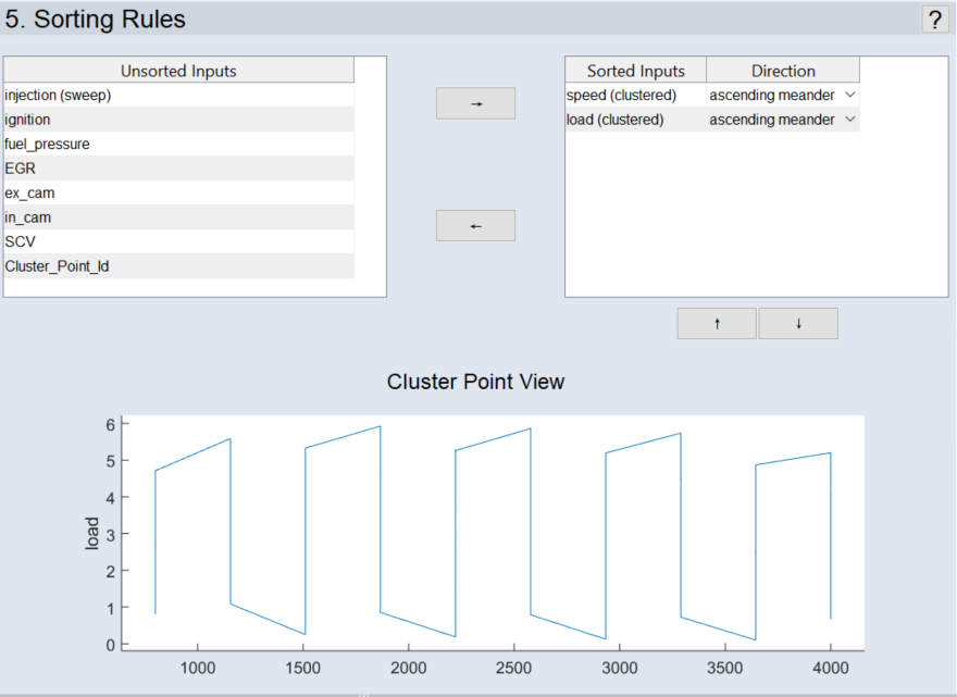 このステップでは、入力のソート規則を定義できます。これにより、対象システムの特性に合わせた方法で実験計画を実行することができます。