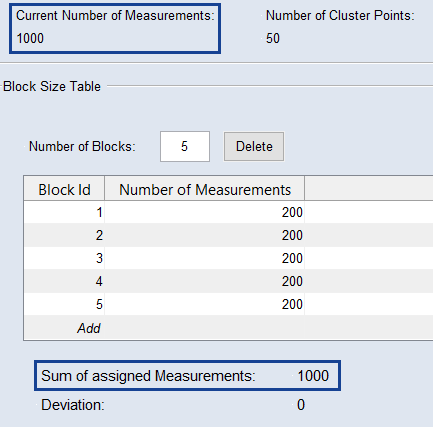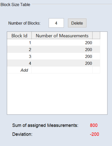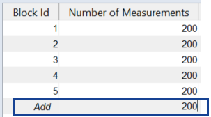テーブルの最下行(Block ID = Add)の Number of Measurement 列に、新しいブロックに割り当てる測定値の数を入力して、<Enter> を押します。