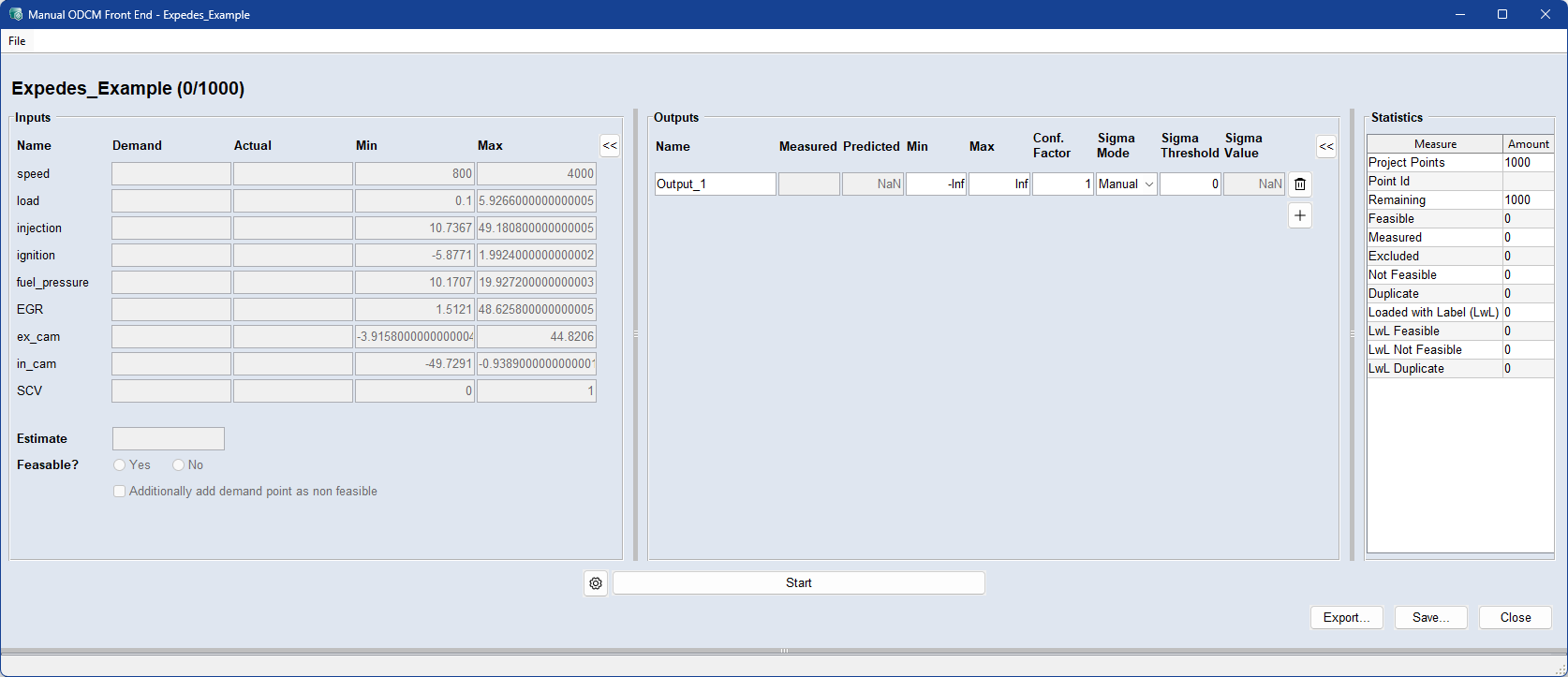 起動時に、実験計画をASCMO-STATIC ExpeDesプロジェクトからロードします。