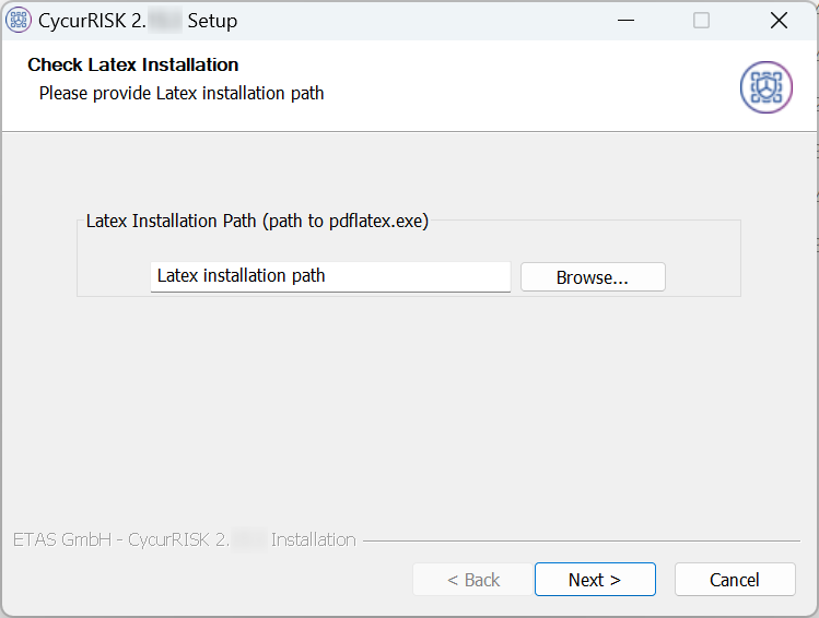 The CycurRISK delivery package does not contain the Latex installer. You must install it from another source. |