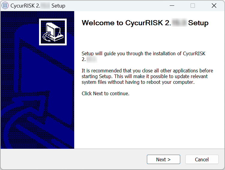 The Welcome to CycurRISK 2.19.2 Setup dialog box is displayed.