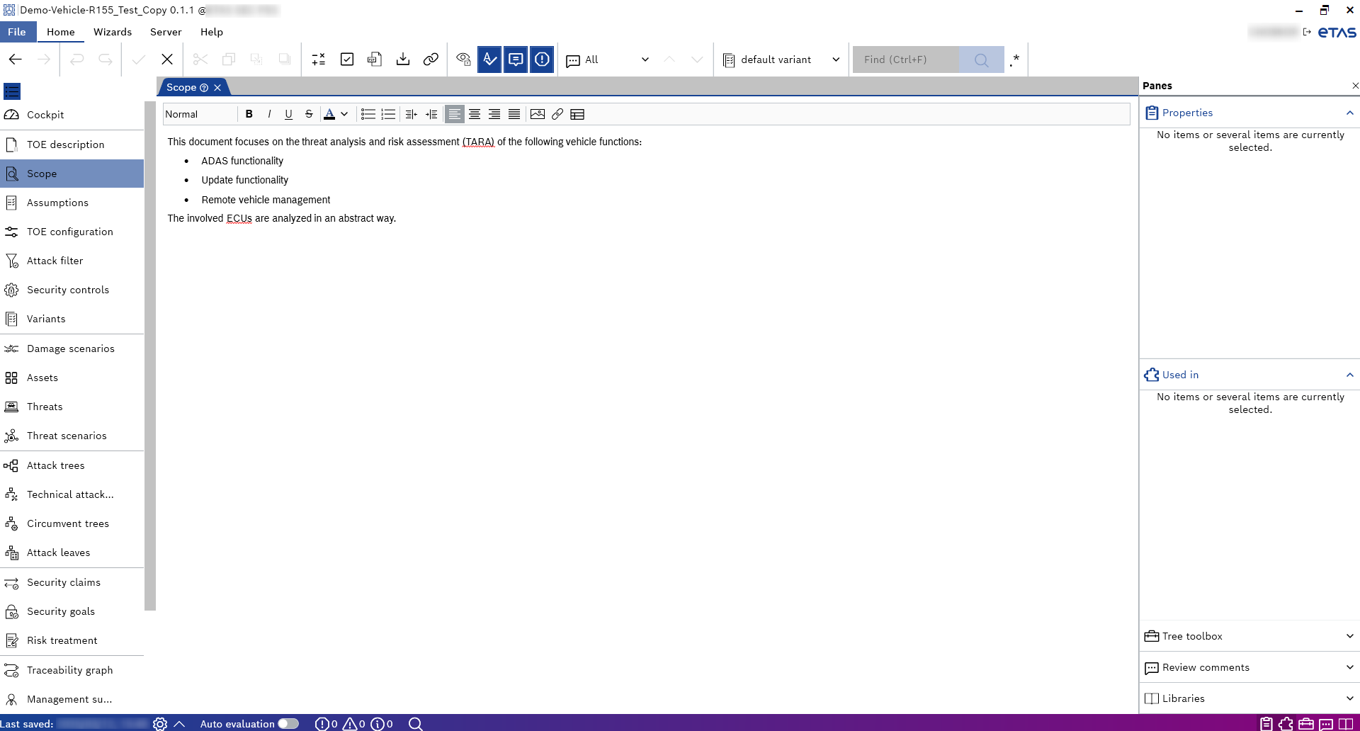 CycurRISK contains a separate page for the Scope, which works just exactly the same as the TOE description.