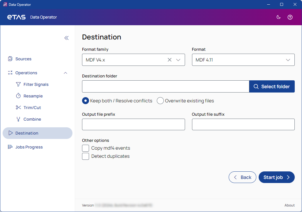 Copy MDF4 events: Only relevant if both the source and destination file formats are MDF4. Copies the events from the source to the target MDF4 file.