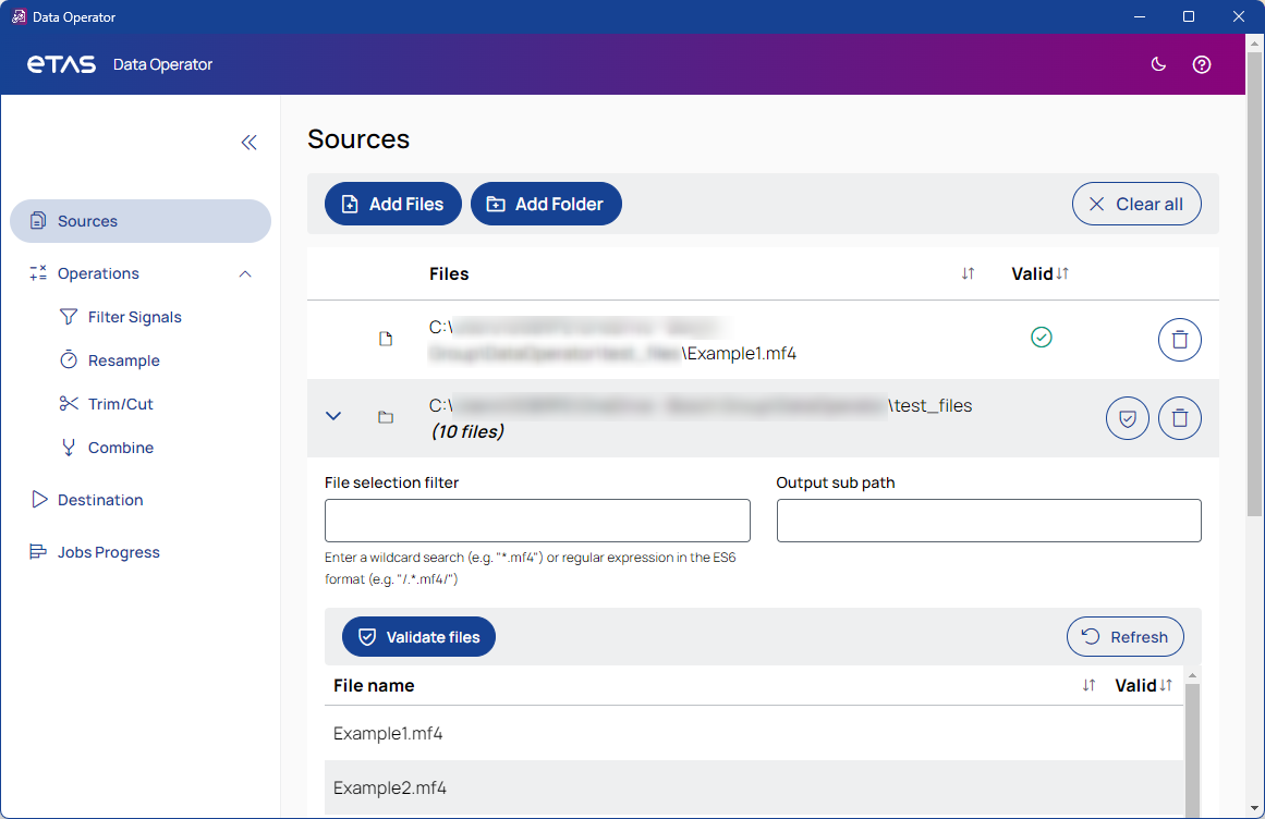Validates all MF4 files in the folder. The validity is indicated by a green check mark or a red cross icon.