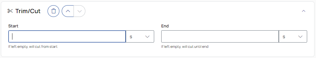 Enter a positive value to define the start point of the trimmed file. To select the unit, use the drop-down list.