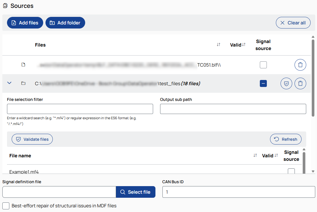 If the Best-effort repair of structural issues in MDF files option is enabled and the job contains one or more operations, all input files are repaired first. After this repair step, the configured operations are applied to all resulting (initially valid and repaired) files.