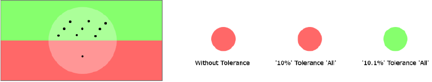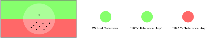 Tolerance type that defines the minimum or maximum percentage of the points that must or may lie inside or outside the feasible range without violating the thresholds.