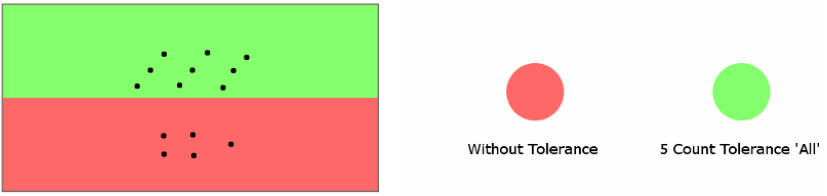 Tolerance type that defines how many points are allowed to lie inside or outside the feasible range and the thresholds would still be considered as not violated. This evaluation behavior corresponds to percent tolerance but uses the absolute instead of relative point numbers.