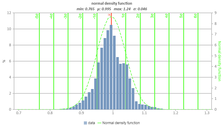 In plots and histograms, you can use chart functions for statistical analysis. The following example shows the normal density function: