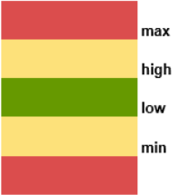 Accepted threshold violations are thresholds that have been defined as not critical for the evaluation during report creation. The accepted threshold violations are shown as follows: Accepted threshold violation in the yellow range: Accepted threshold violation in the red range: |