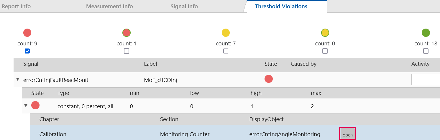 If you expand the tree view, you get the detailed threshold information of this signal including the definition of the ranges and the threshold type. For more information, see Threshold Types.