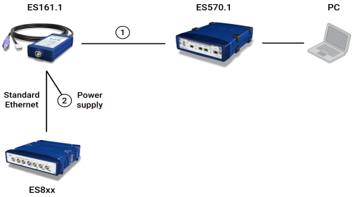 Ensure that the test setup is EMC-compliant. A test setup that uses shielded and unshielded components at the same time can lead to impairment of the signal quality and is not recommended by ETAS. |